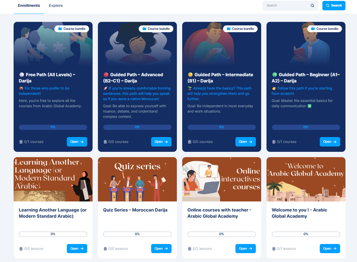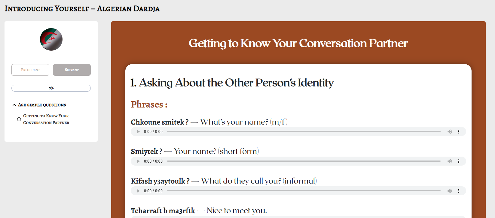 Test your level in Algerian Dardja, then follow the guided pathway tailored to you.