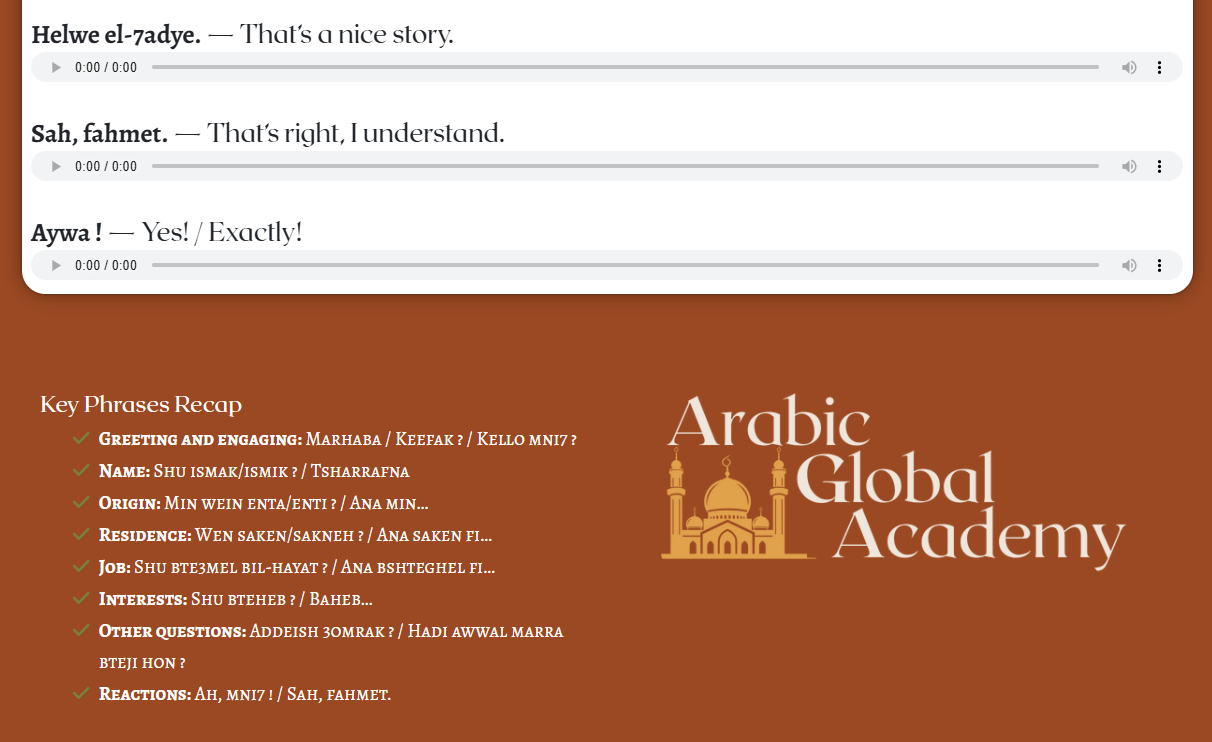 An audio for every word, every sentence, every expression: you’ll pronounce Levantine Arabic correctly.